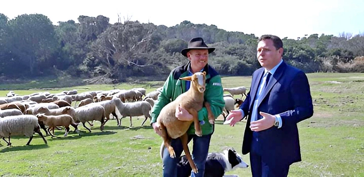 Sur la photo : le maire de St Raphaël Frédéric Masquelier et Eric Gousset lorsqu'il gardait ses moutons dans les friches de Saint Raphaël.